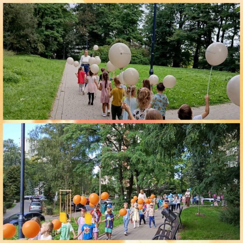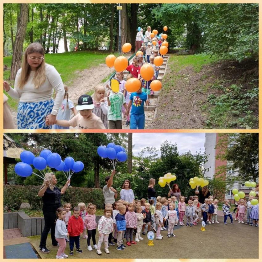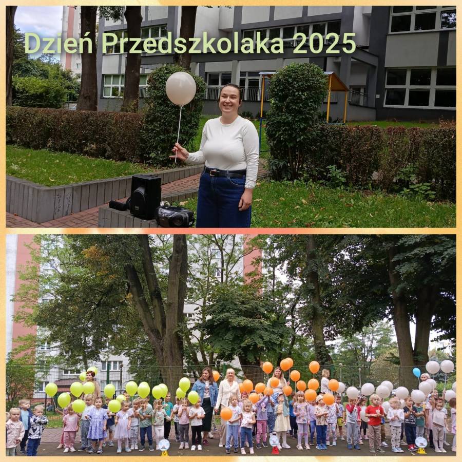 Dnia 19.09. 2025 r. w piątek kolejny raz obchodziliśmy w naszym przedszkolu Święto Przedszkolaka. Tego dnia czekało na dzieci wiele niespodzianek i atrakcji. Przedszkolaki zostały zaproszone na boisko przedszkolne do wspólnej zabawy z Panią Natalią. Wspólnie odśpiewaliśmy hymn przedszkola oraz piosenkę Dzień Przedszkolaka. Pani Dyrektor- Marta Pycia złożyła wszystkim dzieciom piękne życzenia- samych słonecznych dni i radosnych chwil w naszym przedszkolu, aby każdy dzień był wspaniałą przygodą i niósł ze sobą wiele cudownych i pozytywnych doświadczeń. Na końcu z kolorowymi balonami i piosenką na ustach przeszliśmy korowodem przez park. Radość i śmiech świadczyły o wspaniałej zabawie.
