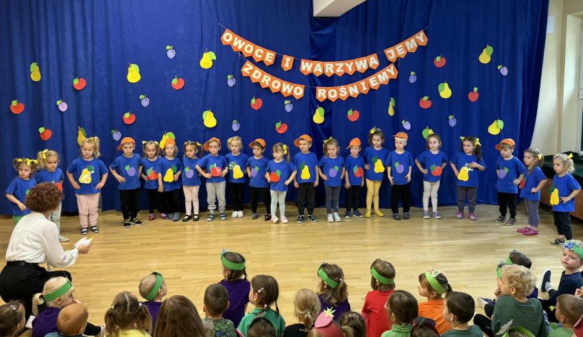 W naszym przedszkolu 17 października odbył się wyjątkowy międzygrupowy konkurs recytatorski, którego tematem przewodnim było zdrowe odżywianie. Na scenie wystąpiła każda grupa prezentując wiersze o warzywach, owocach i zdrowych nawykach. Mali artyści z ogromnym zaangażowaniem i radością recytowali przygotowane utwory, wykazując się odwagą, dykcją i wspaniałą pamięcią. Publiczność nagradzała każdy występ gromkimi brawami! Celem wydarzenia było nie tylko rozwijanie umiejętności recytatorskich, ale również kształtowanie świadomości na temat zdrowego stylu życia. Konkurs okazał się doskonałą okazją do połączenia edukacji z dobrą zabawą! Wszystkim uczestnikom serdecznie gratulujemy i dziękujemy za wspaniałe występy!