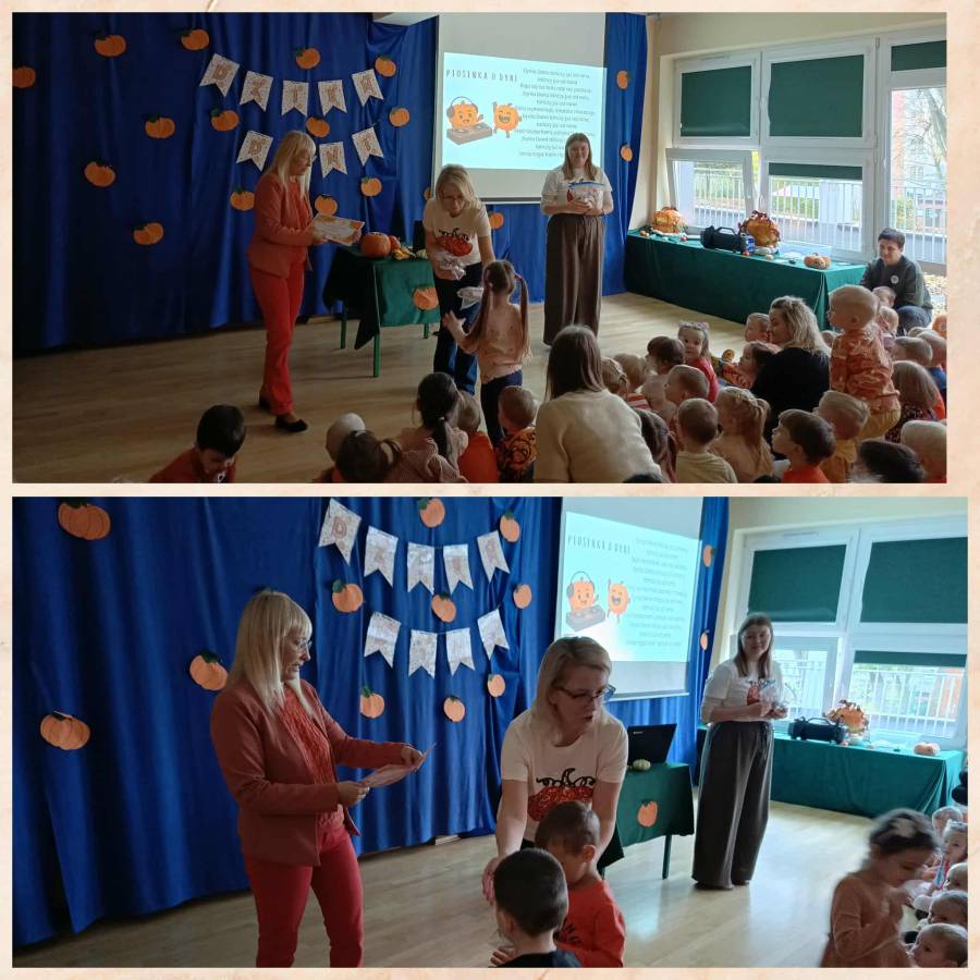 Pod koniec października w naszym przedszkolu odbył się Dzień Dyni. Tego dnia ubraliśmy się na pomarańczowo, by wspólnie uczestniczyć w zajęciach, podczas których poznaliśmy bardzo zdrowe i urodziwe warzywo jakim jest dynia. Dzień Dyni pozwolił nam poznać wielką różnorodność dyń i wzbogacił naszą wiedzę na ich temat. Cała społeczność zarecytowała wiersz o dyni, a także wspólnie zaśpiewaliśmy o niej piosenkę. Tego dnia kuchnia serwowała dyniowe potrawy. Ten dzień był pełen wrażeń i radości.