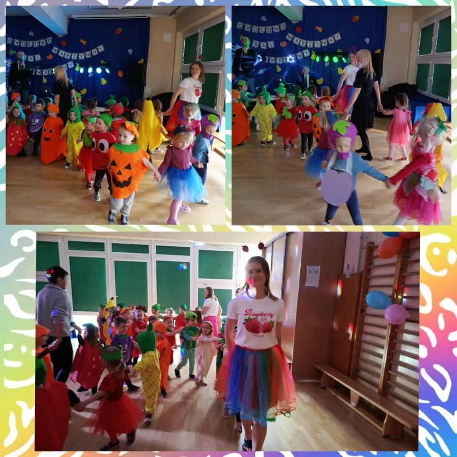 Jak co roku w karnawale, dnia 19 stycznia 2026 r. w przedszkolu odbył się oczekiwany przez dzieci bal- w tym roku owocowo- warzywny. Przedszkolna sala zamieniła się w kolorowy ogród pełen tańczących owoców i warzyw. Na parkiecie pojawiły się między innymi Kiwi, Marchewki, Banany i Truskawki. Nie sposób zliczyć i wymienić tych wszystkich postaci. Rozpoznać dzieci było bardzo trudno.
